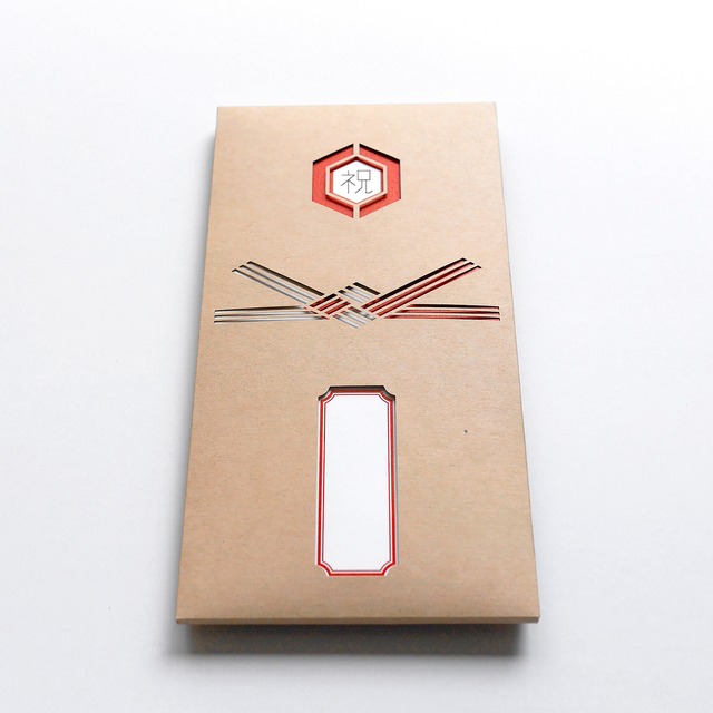 きちんと感はそのままに。伝統の水引を抜き絵にした、親しい人へ贈るご祝儀袋です。 「花結び」は、ほどいて何度でも結び直すことができることから、出産祝いや入学祝いなど「繰り返しの慶事」に用いられる結び方です。その「花結び」をモチーフにした抜き絵で、モダンにデザインしました。中包には毘沙門亀甲柄をあしらい、福を招く縁起を込めています。 中包は形状から完全オリジナルで設計し、新しいご祝儀袋シリーズとしてグレードアップしました。 リニューアルに合わせて中包は2枚入りになっています。また、中包の柄部分には一部リッチな金インクを使用しています。 ■ 商品サイズ・仕様 上包(ご祝儀袋の外装):W95mm×H180mm 中包(ご祝儀を包む袋):W90mm×H176mm / 2枚入り 水引:水引:花結び(入学祝・出産祝 など) 表書き:「祝」 ■ 商品の特徴 上包:クラフト紙ならではの温かみと親しみやすい印象 中包:福を招く縁起柄として親しまれてきた日本伝統の毘沙門亀甲柄 水引:花結びをモチーフに抜き絵で仕立てたモダンなデザイン 熨斗:表書きと一体化したシンプルなデザインz ■ 用途に合わせて 出産祝い・入学祝いなど「繰り返しの慶事」に 就職祝い・記念日など、親しい人への贈り物に ■ 納期・発送について 平日は本業のため、週末にメッセージの確認や商品の発送を行うことが多く、発送までに1週間ほどお時間をいただく場合がございます。 お急ぎの場合は必ずご購入前にご連絡ください。できる限りご要望にお応えできるよう努めます。 また、年末年始や年度末など繁忙期には、対応が難しい場合がございますので、あらかじめご了承ください。