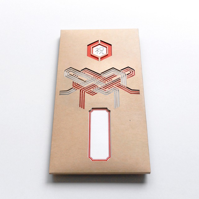 きちんと感はそのままに。伝統の水引を抜き絵にした、親しい人へ贈るご祝儀袋です。 「結び切り」は、一度結ぶとほどけないことから「繰り返してほしくない、一度きりで良いお祝い」に用いられる結び方です。その「結び切り」をモチーフにした抜き絵で、モダンにデザインしました。中包には毘沙門亀甲柄をあしらい、福を招く縁起を込めています。 中包は形状から完全オリジナルで設計し、新しいご祝儀袋シリーズとしてグレードアップしました。 リニューアルに合わせて中包は2枚入りになっています。また、中包の柄部分には一部リッチな金インクを使用しています。 ■ 商品サイズ・仕様 上包(ご祝儀袋の外装):W95mm×H180mm 中包(ご祝儀を包む袋):W90mm×H176mm / 2枚入り 水引:結び切り(結婚祝い・快気祝い など) 表書き:「祝」 ■ 商品の特徴 上包:クラフト紙ならではの温かみと親しみやすい印象 中包:福を招く縁起柄として親しまれてきた日本伝統の毘沙門亀甲柄 水引:結び切りをモチーフに抜き絵で仕立てたモダンなデザイン 熨斗:表書きと一体化したシンプルなデザイン ■ 用途に合わせて ご結婚時のご祝儀として最適(「一度きり」の門出に) 快気祝いなど、繰り返してほしくないお祝いに ■ 納期・発送について 平日は本業のため、週末にメッセージの確認や商品の発送を行うことが多く、発送までに1週間ほどお時間をいただく場合がございます。 お急ぎの場合は必ずご購入前にご連絡ください。できる限りご要望にお応えできるよう努めます。 また、年末年始や年度末など繁忙期には、対応が難しい場合がございますので、あらかじめご了承ください。