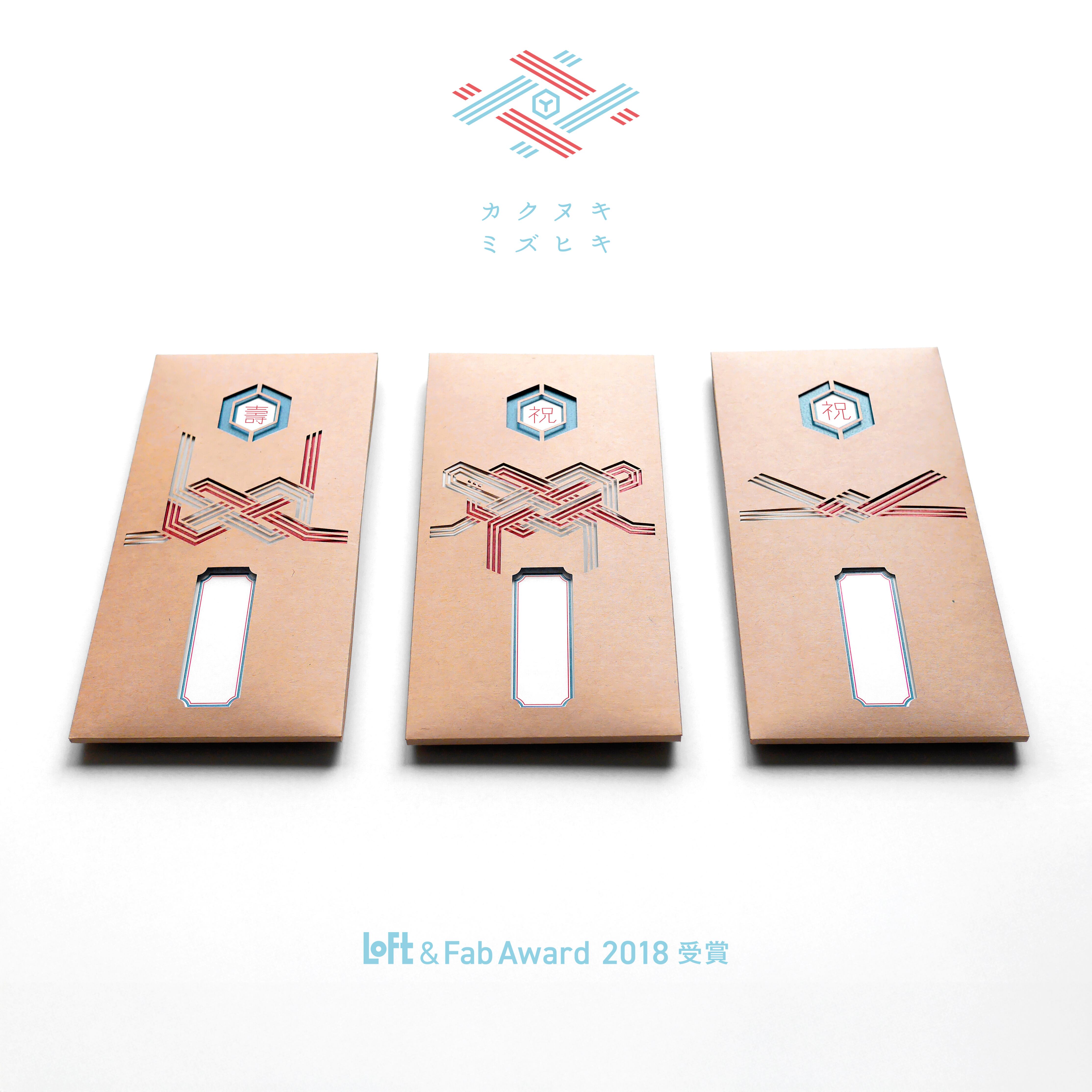 水引:淡路結びをモチーフに抜き絵で仕立てたモダンなデザイン