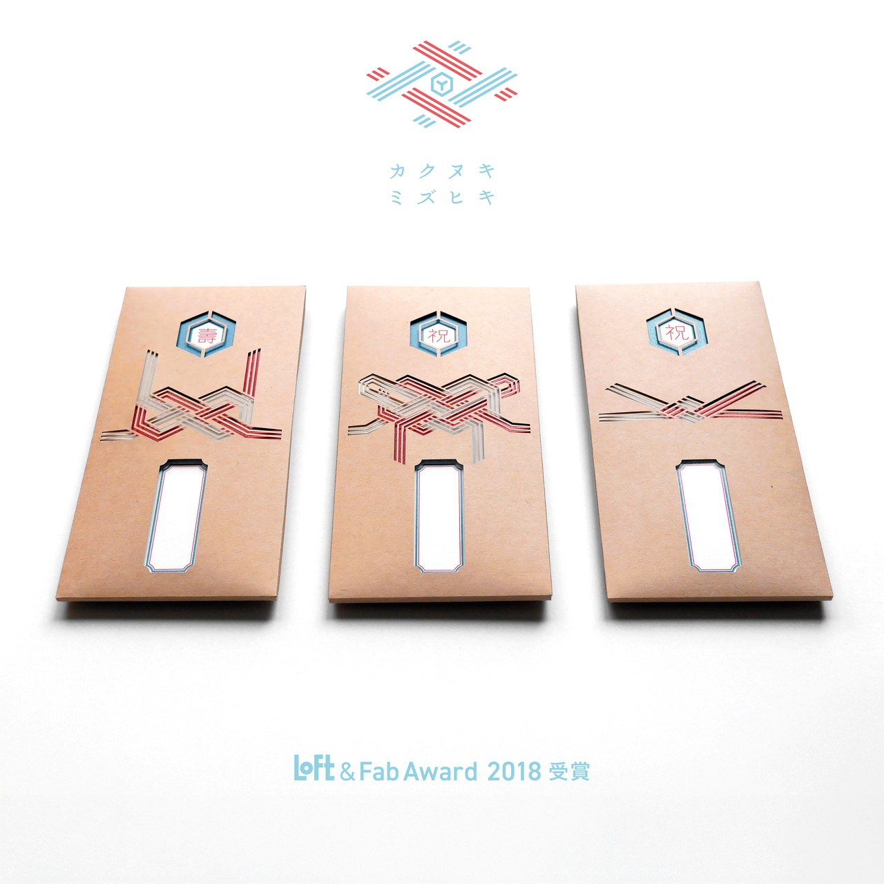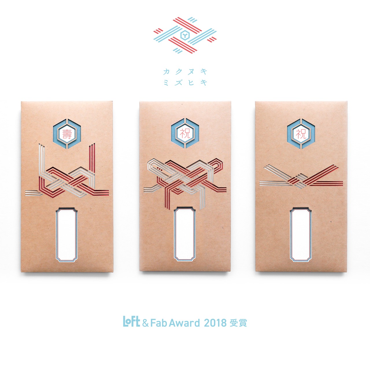 水引:結び切りをモチーフに抜き絵で仕立てたモダンなデザイン
