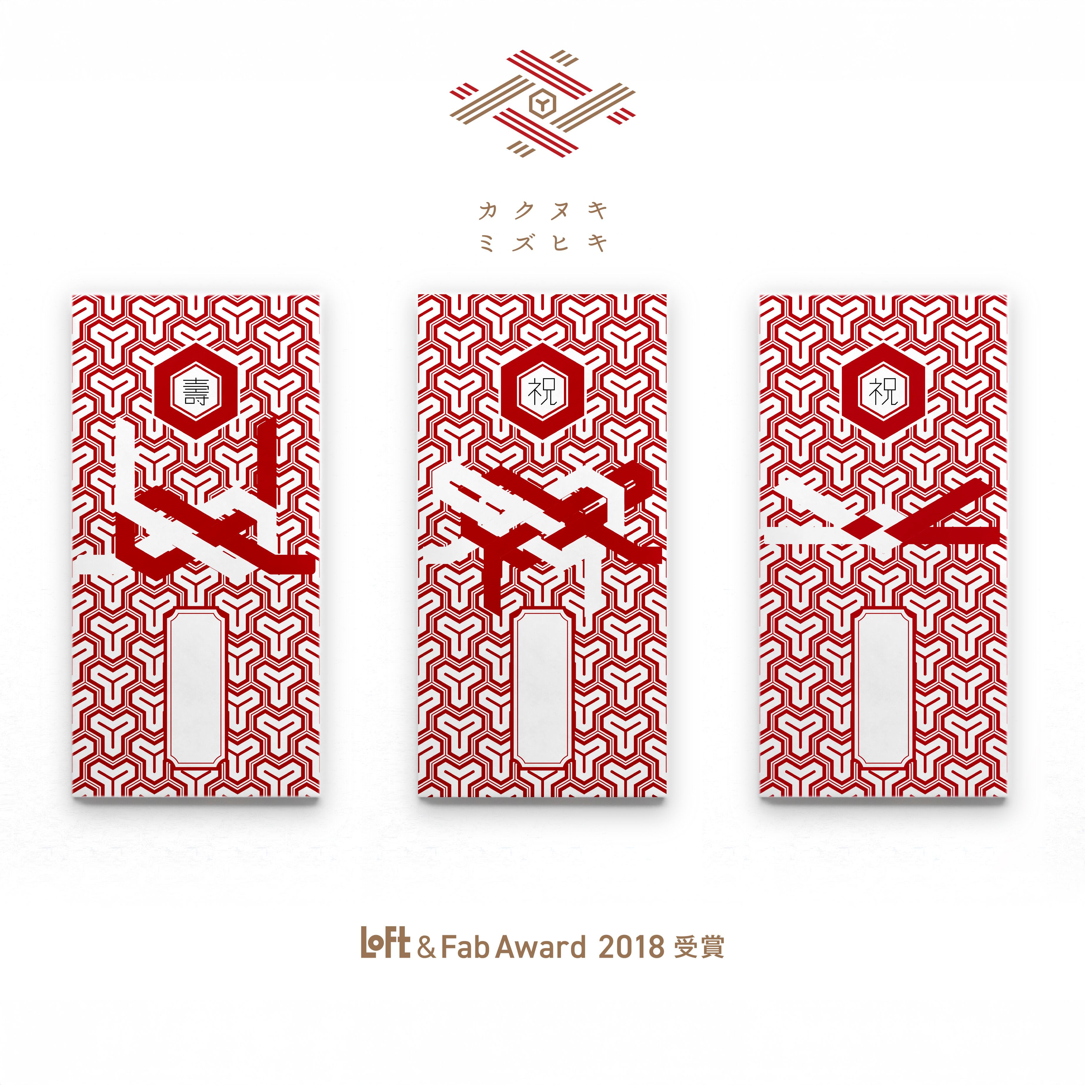 水引:淡路結びをモチーフに抜き絵で仕立てたモダンなデザイン